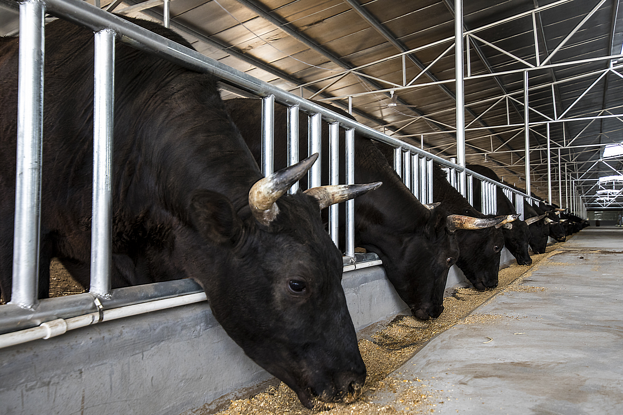 在纽澜地何牛食品有限公司,高青黑牛正在进食。(图片由受访者提供)