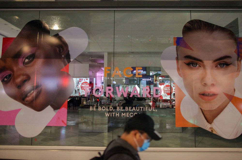 2月14日,一名男子戴着口罩从新西兰奥克兰的一家店铺外走过。(新华社发,赵纲摄)