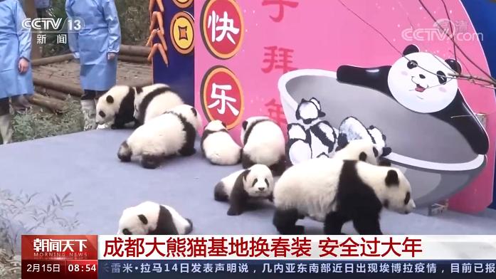 春节期间,占地1500多亩的成都大熊猫繁育研究基地,换上了新春装。亮闪闪的大门,红彤彤的灯笼,以及遍布各个角落的大熊猫卡通玩偶,把基地装扮得喜气洋洋。2020年,成都熊猫基地全力开展圈养大熊猫种群繁育攻关。前几天,2020年新生的宝宝集体亮相,9只小可爱为大家送上了最萌的新春祝福。针对节日游客增多,人流量加大,基地进一步加强防疫措施,确保安全。