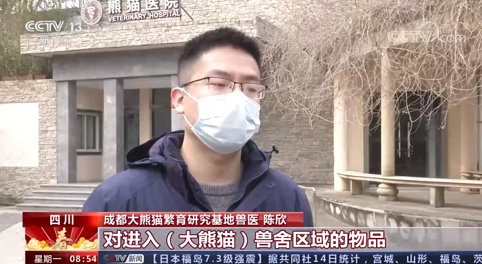 成都大熊猫繁育研究基地兽医 陈欣:对进入(大熊猫)兽舍的物品加强了日常消毒;大熊猫兽舍的活动区域加强了消杀频率;对于大熊猫体况,严格进行管理,严格进行观察。