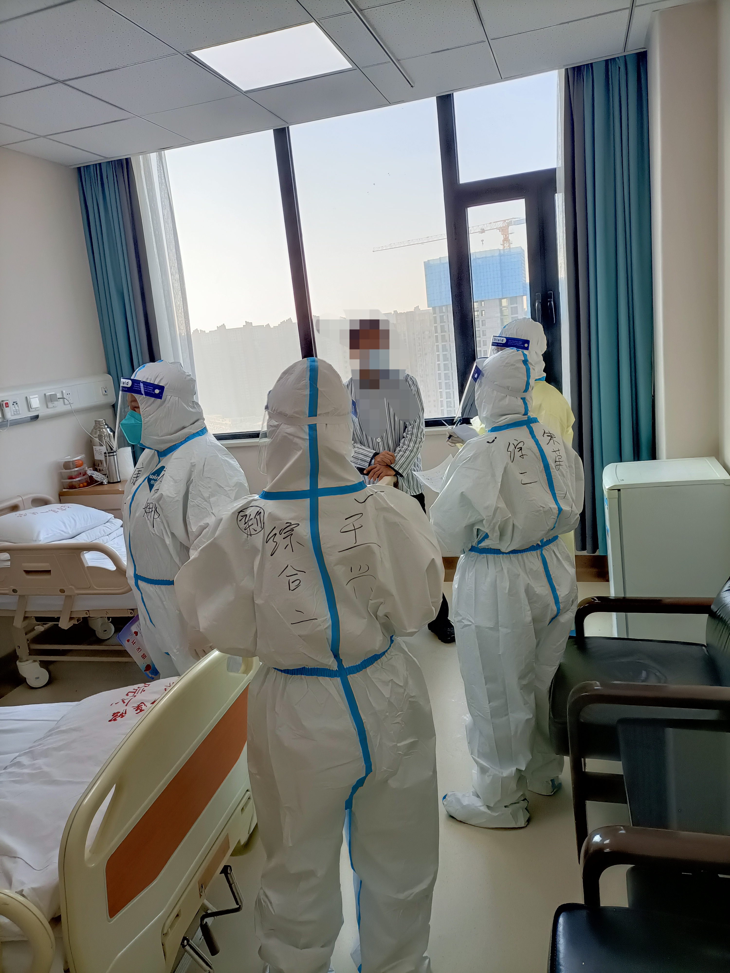 王兴和同事在石家庄市的新冠肺炎定点医院查房诊治患者。受访者供图