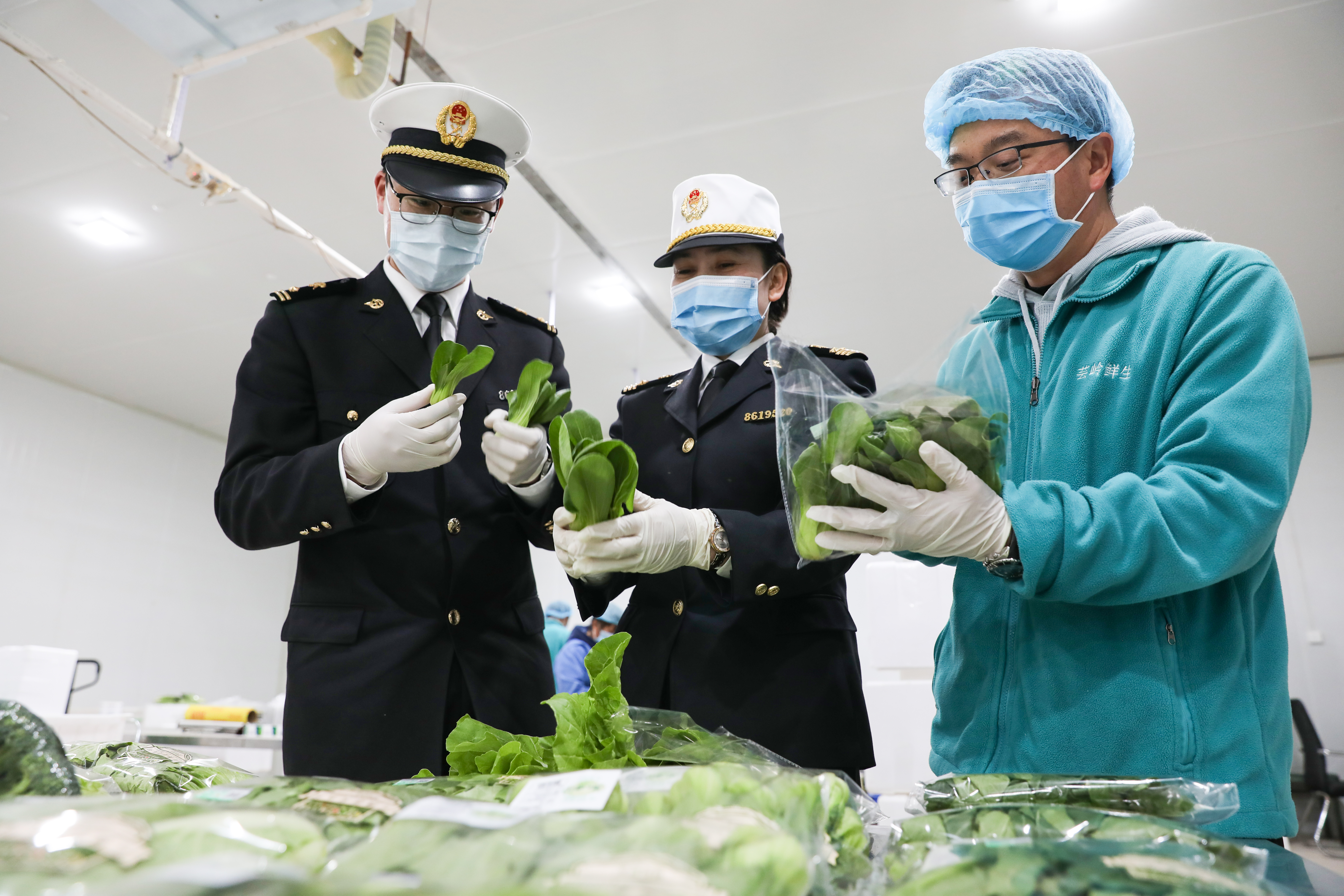 海关关员在云南昆明一出口蔬菜包装车间进行源头监管。新华社发 何若成 摄
