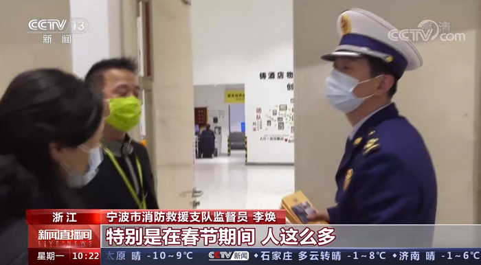 浙江宁波市消防救援支队监督员 李焕 :现在人比较多,常闭式防火门要处于闭的状态,如果客人比较多,出入比较多的话,那你们巡查人员尽量多巡一巡。尽量保持防火门的常闭,加强巡逻,特别是在我们春节期间人这么多。你们自己多检查检查,因为这都写了常闭式防火门,所以要把它常闭。(总台央视记者 宋飞京 杜文科 余沛文 曾科菘)
