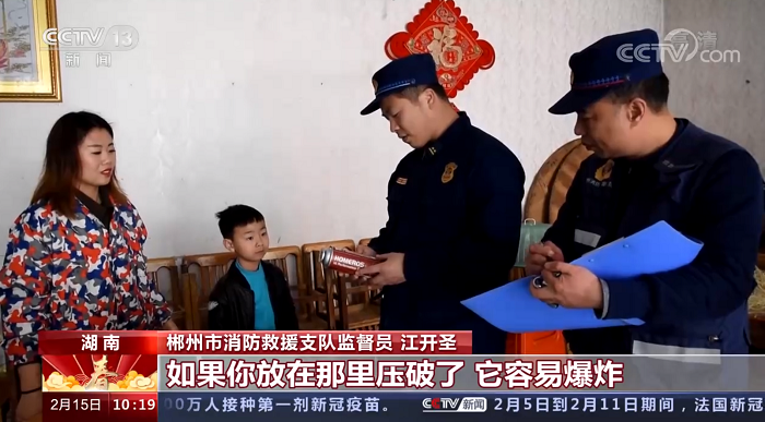 湖南郴州市消防救援支队监督员 江开圣:像你们这种燃气罐,一定要注意它的安全。一个是它不能放在高温的地方,毕竟它的危险性有这么大,如果你放在那里压破了,它容易爆炸,尤其是有小朋友在附近,容易伤到人。
