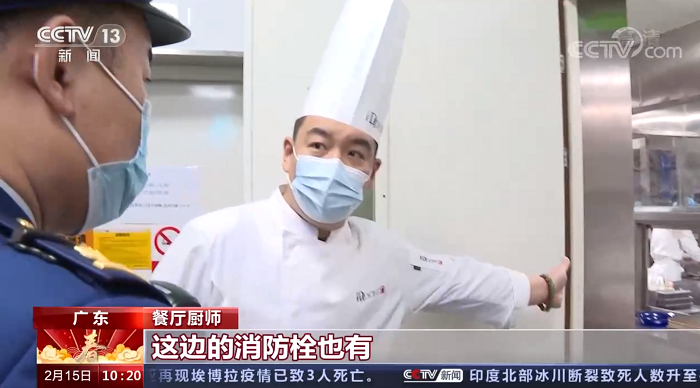 消防监督员对广东深圳的一些餐饮场所的厨房的防灭火设施进行了检查。