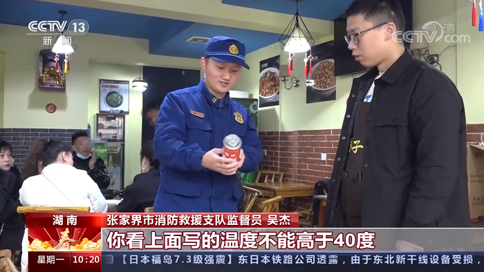湖南张家界市消防救援支队监督员 吴杰:这个东西储存啊,一个是不要存得太多。第二个是储存的环境一定要是阴凉的地方。你看上面写的温度不能高于40摄氏度。