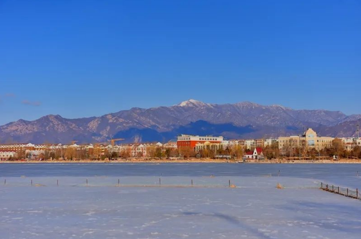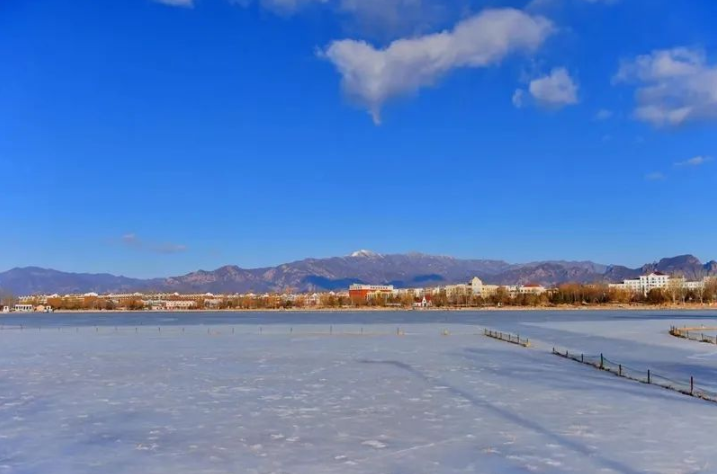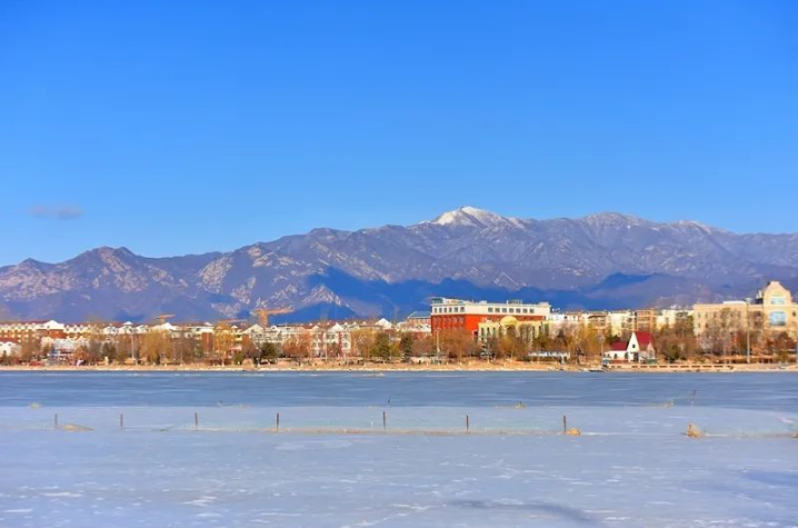 翌日天晴,碧空如洗,覆盖着皑皑春雪的海陀山顶,在蓝天、碧水、青山的映衬下,呈现出一幅绝美景致。