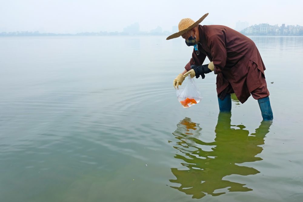 按照传统的习俗,人们都要到河边放生灶王爷的坐骑——鲤鱼为他饯行,祈求他在向上天汇报时能更多地体谅民间疾苦。