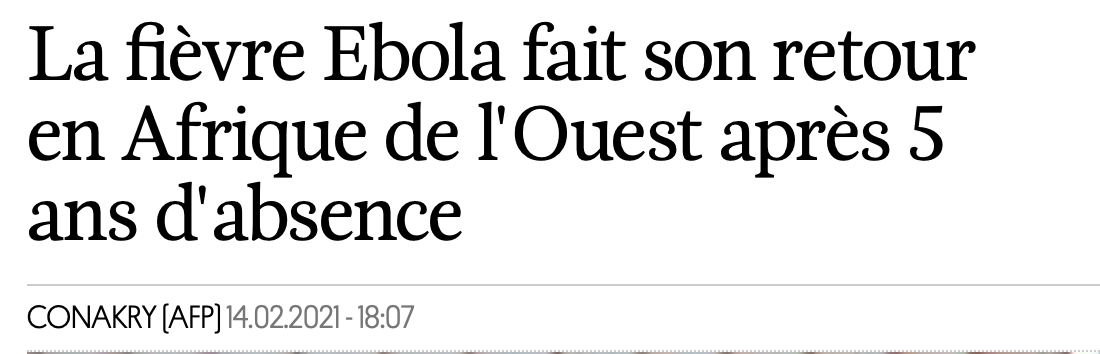 此次几内亚再次出现埃博拉病例之所以令人担忧,是因为,现有病例集中在几内亚东南部的恩泽雷科雷地区。而2013 年12月,埃博拉疫情正是从这个地区暴发,继而迅速扩散至利比里亚、塞拉利昂、尼日利亚、马里及美国等国家。自2013年在西非暴发,到2016年世卫组织正式宣告疫情结束,埃博拉共夺去超过11300人的生命。