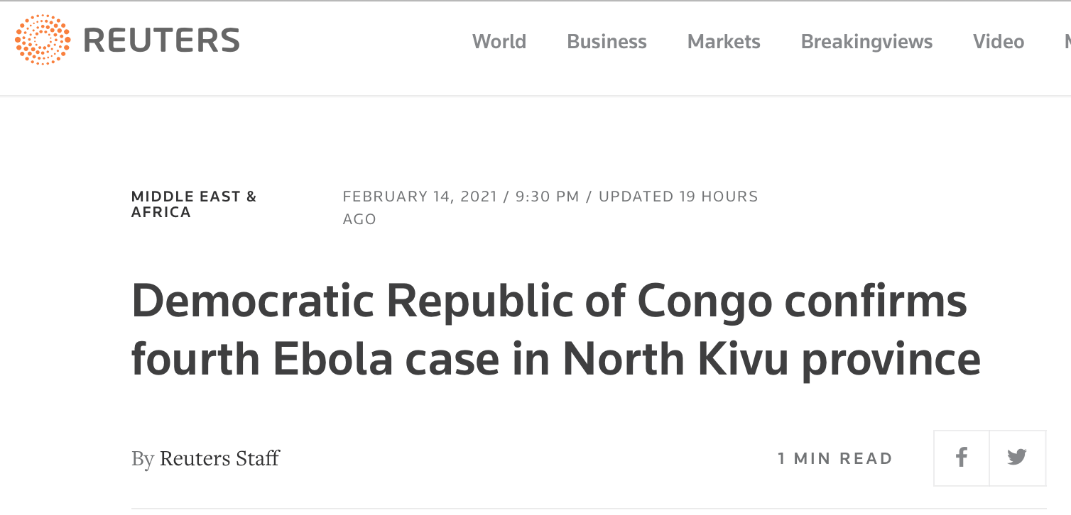 埃博拉病毒是1976年首次在刚果(金)埃博拉河附近被发现的,此后埃博拉疫情在刚果(金)不时出现。继西非埃博拉疫情后,刚果(金)2018年8月至2020年6月暴发第十轮埃博拉疫情,造成逾2000人死亡。