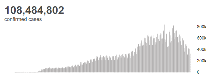 世卫组织:全球新冠肺炎确诊病例累计超1亿848万例