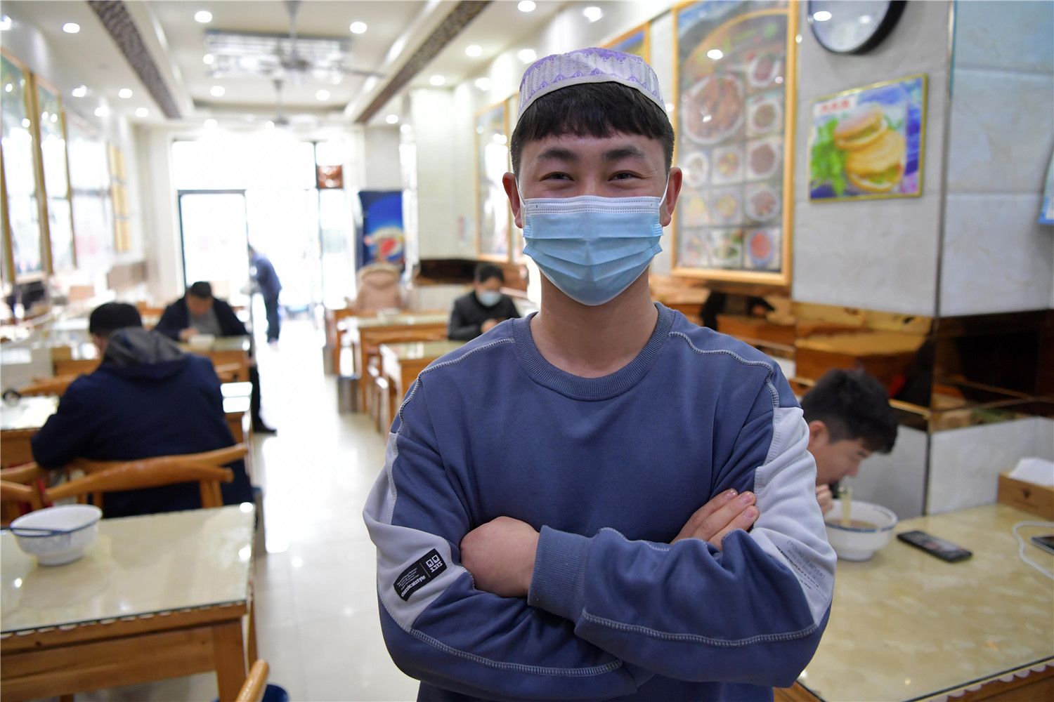 在江西省南昌市红谷滩区,韩海明正在自己的拉面馆内(2月10日摄)。新华社记者 彭昭之 摄