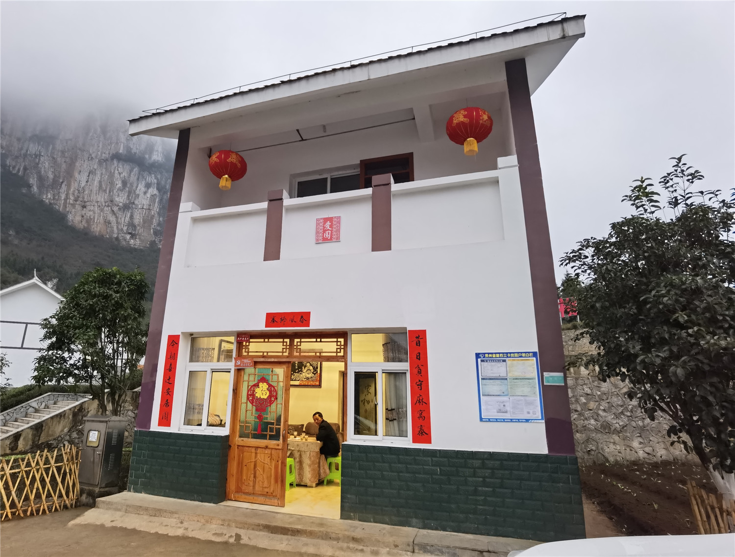 靠山面水而建的化屋村易地扶贫搬迁安置点,几十栋白墙阁窗的黔西北民居依山就势、错落有致。喜迎春节的苗族村民,家家户户墙上挂着红灯笼、门头贴着红春联,节日气氛浓郁。