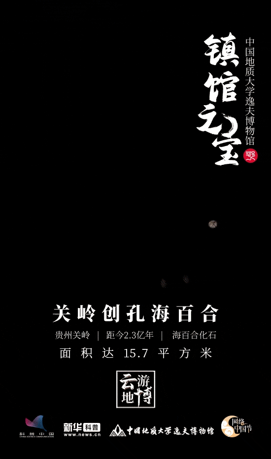 走进中国地质大学逸夫博物馆生命起源与进化展厅,15.7平方米的化石上,数十朵绽放的“百合花”栩栩如生,根、茎、冠全都清晰可辨,演绎一部穿越2.3亿年的石头开花记。这块产自贵州关岭的海百合化石如花似画,是逸夫博物馆的一大“镇馆之宝”。海百合是一种海生无脊椎动物,属于棘皮动物门海百合纲,最早出现于距今约4.8亿年前的奥陶纪早期。一个理想的海百合化石由根、茎和腕三个部分组成,但由于形成环境比较苛刻,大多数化石保存并不完整。所以像逸夫博物馆所展示的特征清晰、保存完整的化石便显得十分珍贵。透过这块珍贵的海百合化石,人们可以看到海百合的内部结构,为研究海百合的演变提供了极其珍贵的资料,更为参观者勾画出史前海洋与海洋生物的奇妙景观。