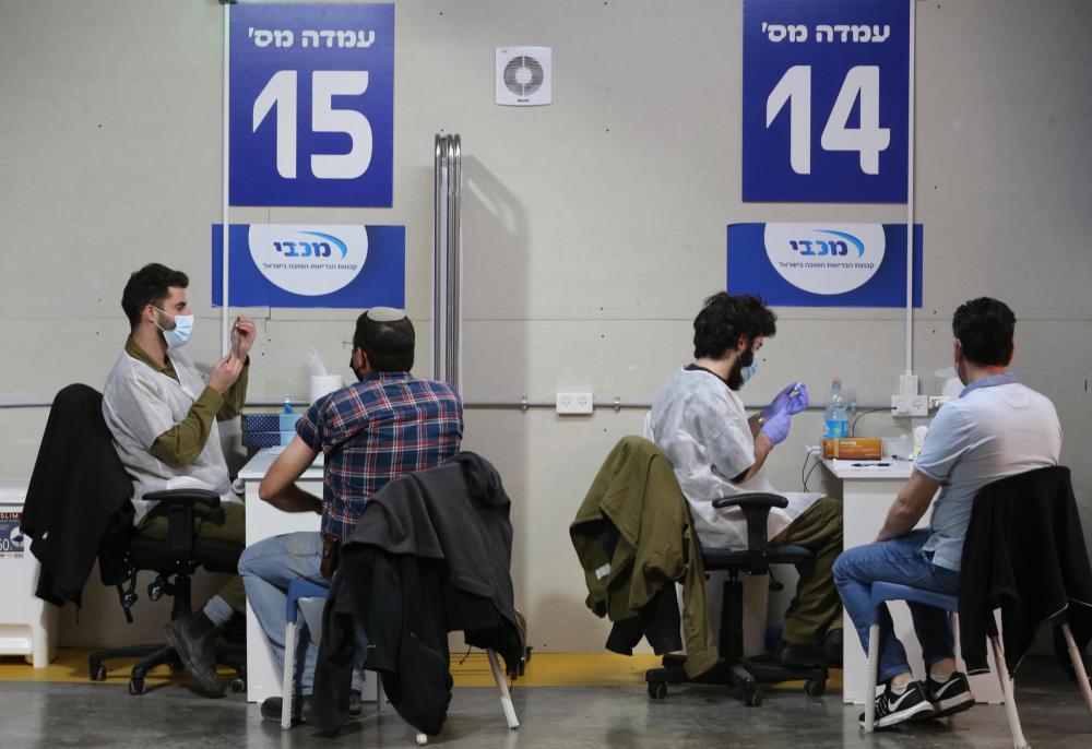 1月19日,人们在以色列吉夫阿塔伊姆接种新冠疫苗。(新华社发,穆阿迈尔·阿瓦德摄)