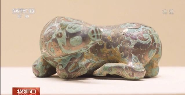 国家博物馆副研究馆员 翟胜利:这种席镇的体量,是在当时的席镇里面属于比较大的。在春秋战国时期,青铜礼仪文化发生了一定的转变,呈现出一定的世俗化倾向,相当一部分用青铜器制作的器物也开始走进贵族的日常生活,这件就是牛的形象结合到青铜器上面走入贵族的日常生活当中的一种表现。