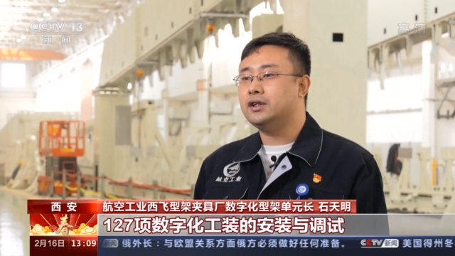 航空工业西飞型架夹具厂数字化型架单元长 石天明:春节假期期间,我和我的团队组织AG600项目127项数字化工装的安装与调试,确保节后顺利交付。一是响应国家疫情防控政策,为疫情防控做贡献,二是作为一名航空人,为航空强国做贡献。我觉得这个年过得非常有意义。