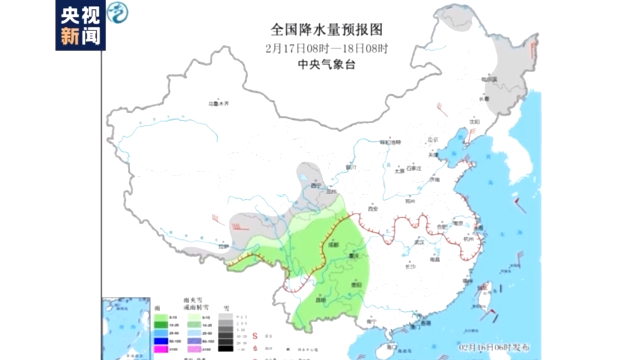在降水方面,16至17日,东北地区东部、山东半岛、青藏高原东部等地有小到中雪或雨夹雪,黑龙江东北部局地有大雪或暴雪;西南地区、江南大部、华南西北部等地的部分地区有小到中雨。
