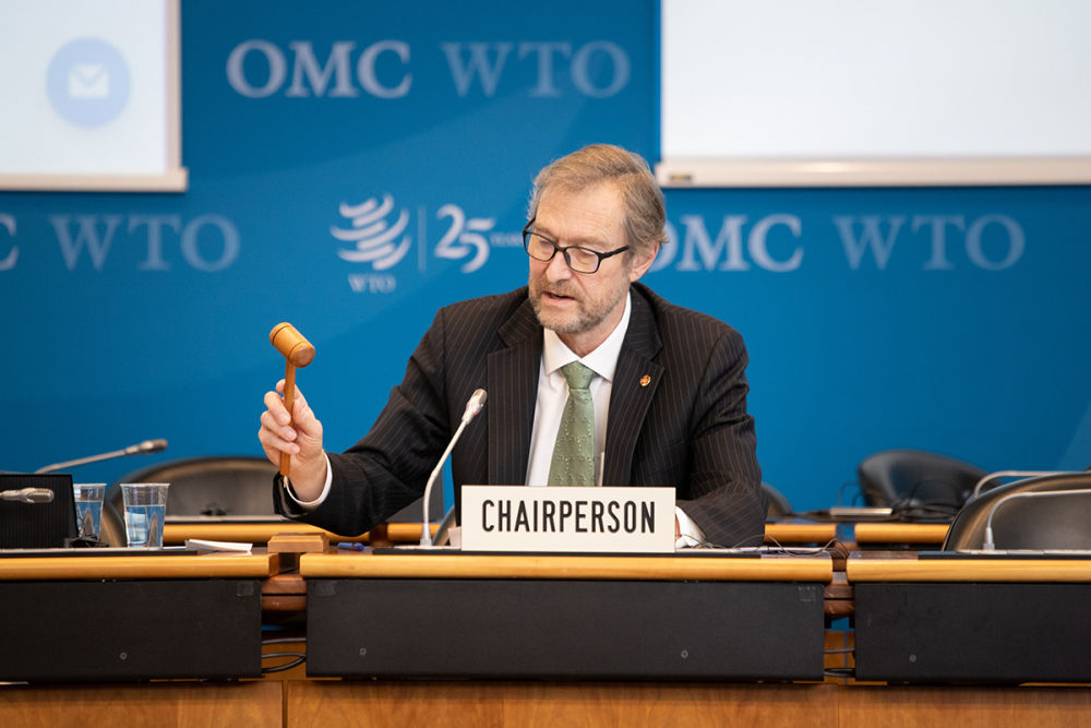 2月15日,世贸组织总理事会主席戴维·沃克在瑞士日内瓦举行的总理事会特别会议上宣布奥孔乔-伊韦阿拉被任命为新任总干事。(新华社发,世贸组织提供)