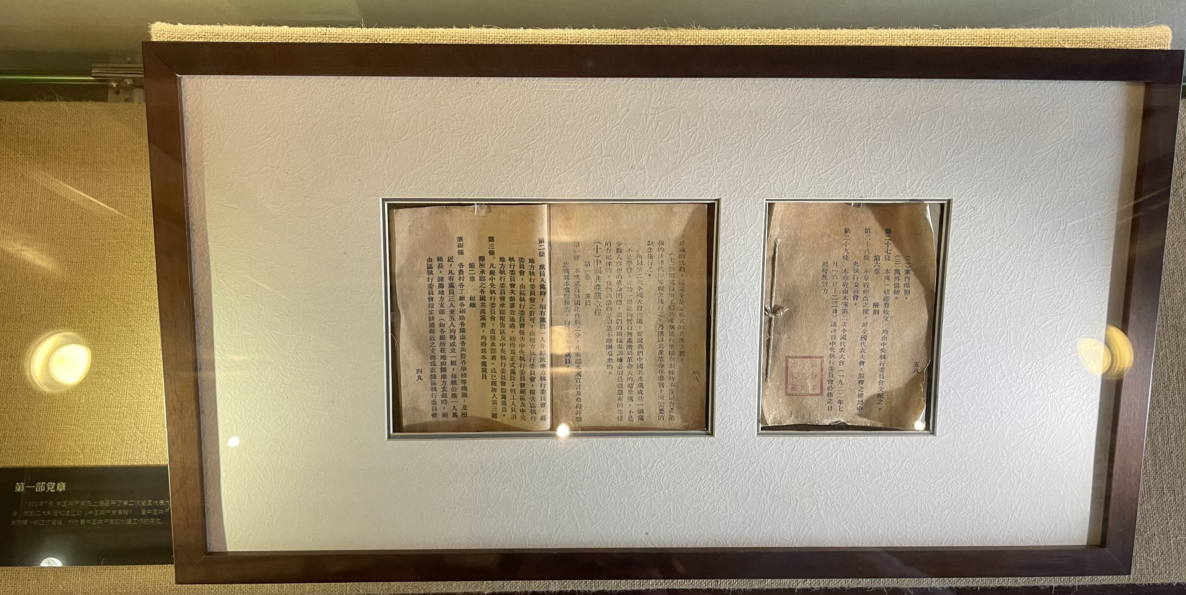 张人亚党章学堂中的中国共产党第一部党章,原件藏于中央档案馆。(张人亚党章学堂供图)