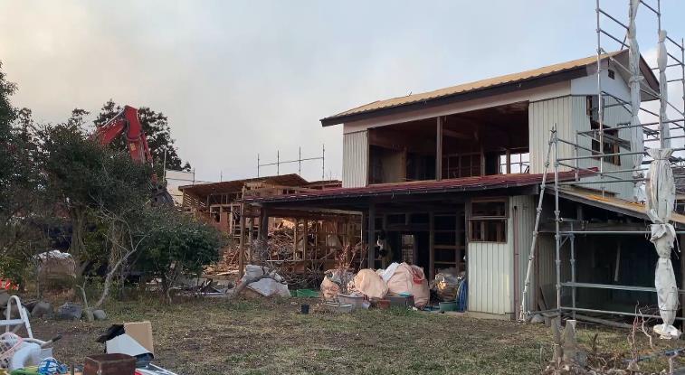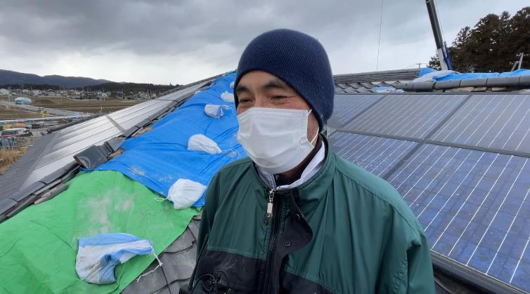 新地町居民中津川忠文表示,家里厨房的墙壁上全是裂缝,屋顶上的瓦也大面积掀开,只能每天花时间,一点点修好。家里的水管破裂,自来水不能用,现在只能从山上打水,以供生活用水。