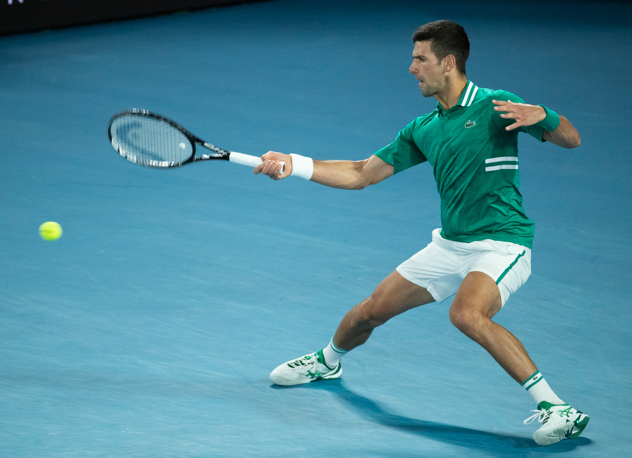 2月16日,焦科维奇在比赛中回球。新华社发(胡泾辰摄)