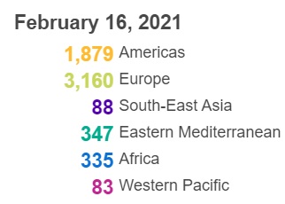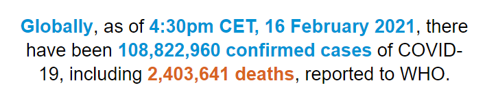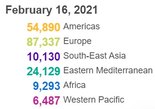根据世卫组织最新实时统计数据,截至欧洲中部时间2月16日16时30分(北京时间2月16日23时30分),全球累计新冠肺炎确诊病例108822960例,累计死亡病例2403641例。2月16日全球新冠肺炎确诊病例新增192266例,死亡病例新增5892例。(总台记者 朱赫)