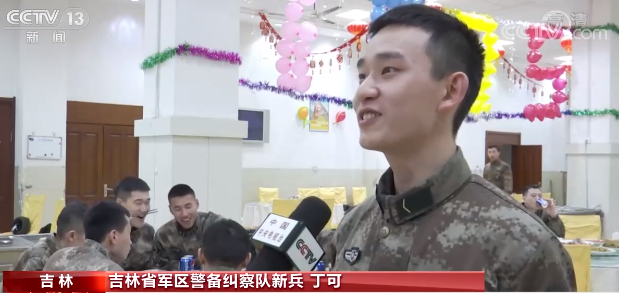 吉林省军区警备纠察队新兵 丁可:天天有各地特色,顿顿不重样,人人大饱口福,在军营过年一样有家的味道,有妈妈的温暖关爱。