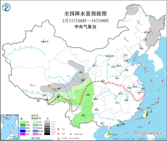 今明两天全国雨雪范围缩减,但西南地区、东北地区降水持续。中央气象台预计,今天黑龙江东部和西北部、吉林东部、青藏高原东部等地的部分地区有小到中雪或雨夹雪,四川中西部、贵州西部、云南大部等地的部分地区有小雨或阵雨;明天内蒙古东北部、黑龙江北部、西藏东部、青海南部、川西高原北部等地的部分地区有小到中雪或雨夹雪,四川中西部、贵州西部、云南大部、台湾岛等地的部分地区有小到中雨。