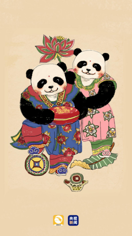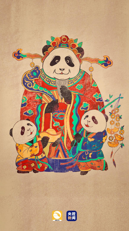 “熊猫贺岁”年画由多次担任大型非遗活动策划和非遗展览策展人的李振宇策划。清华大学艺术学博士蔡端懿、中国传媒大学数字媒体艺术专业博士李翔担任设计师。年画演绎了憨态可掬的熊猫大侠门神、睿智富贵的熊猫财神、欢快活泼的熊猫喜神、祥和安定的熊猫寿星,在新春佳节,为大家送上美好的祝福!