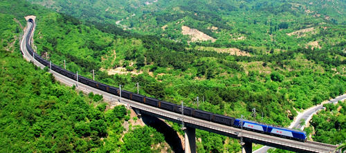 ▲一辆重载列车行驶在检修结束后的大秦铁路上(2019年4月16日摄)。新华社记者曹阳摄