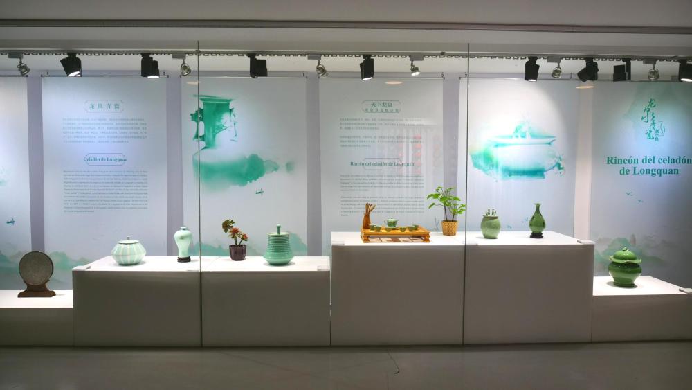 马德里中国文化中心内的龙泉青瓷展示角。马德里中国文化中心供图