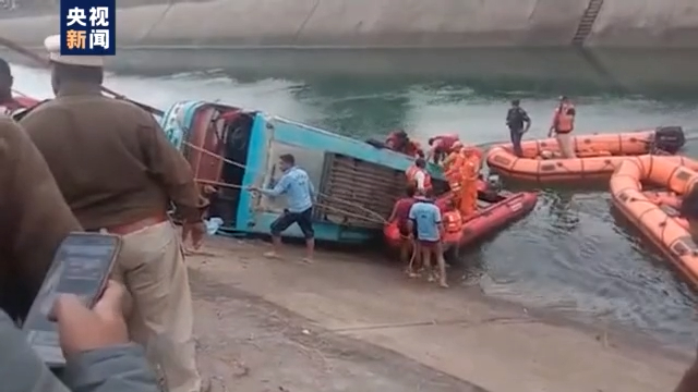 当地时间16日上午,印度中央邦发生一起交通事故,一辆载有50多人的大巴车坠入路边的运河。