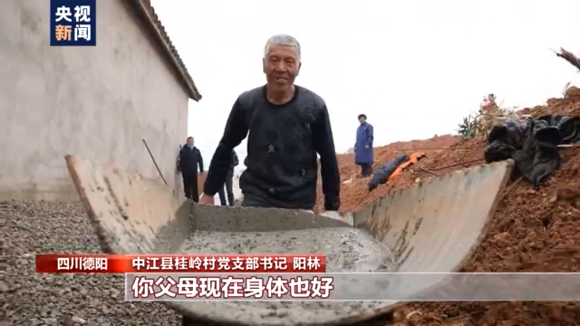 中江县桂岭村党支部书记 阳林:曾光勇,你看,你现在最担心的事情,也就是后面那个排水沟,安排给你整了,你在那边可以安心工作,你父母身体也好。