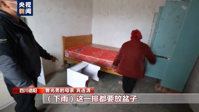 曾光勇母亲 宾连清:(下雨)这一排都要放盆子,你看这个里面,全部都漏了。