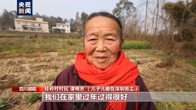 桂岭村村民 谭明芳:杨辉,你在外面过年,你们一定要过好,我们在家里过年过得很好,把你们两个娃娃都照看得好好的。