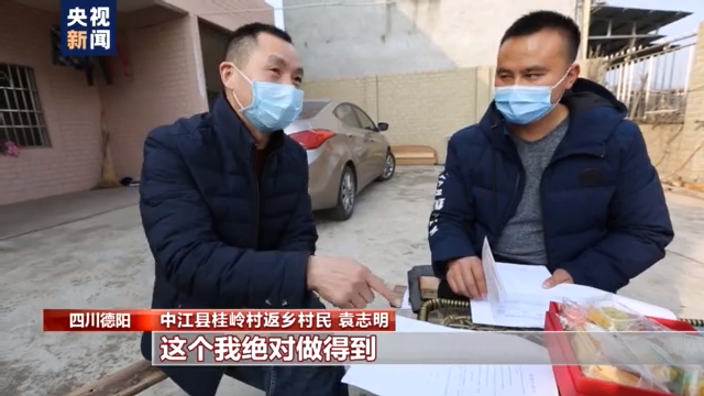 中江县桂岭村返乡村民 袁志明:非必要不聚集不外出,这个我绝对做得到,你们的工作做得太细致了,我们的要求你们都满足了。