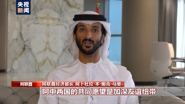 阿联酋经济部长 阿卜杜拉·本·图克·马里:阿中两国的共同愿望是加深友谊纽带,发展多个领域的伙伴关系,祝我们的中国朋友新年快乐,万事如意,心想事成。
