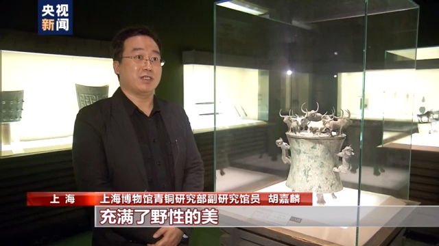 上海博物馆青铜研究部副研究馆员 胡嘉麟:这一件贮贝器它是象征着财富的。当时在云南地区贝是作为货币在使用。这个贮贝器的造型非常奇特,这个牛的艺术风格非常写实,充满了野性的美。