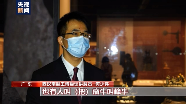 西汉南越王博物馆讲解员 何少伟:这种瘤牛的特点,是背部有一个驼峰一样的东西,也有人叫瘤牛峰牛。