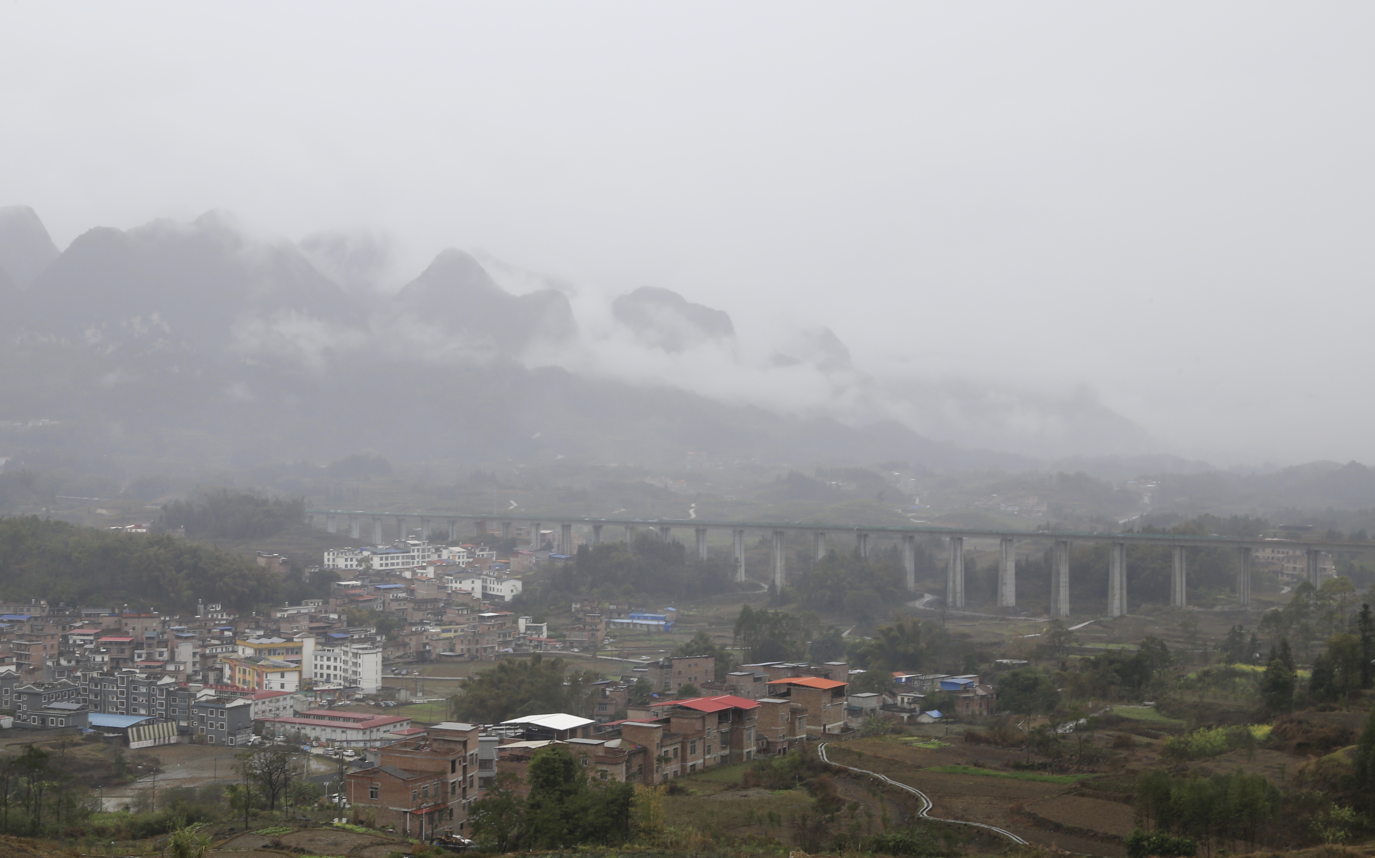 高铁线路经过广西环江毛南族自治县下南乡。(新华社记者 徐海涛摄)