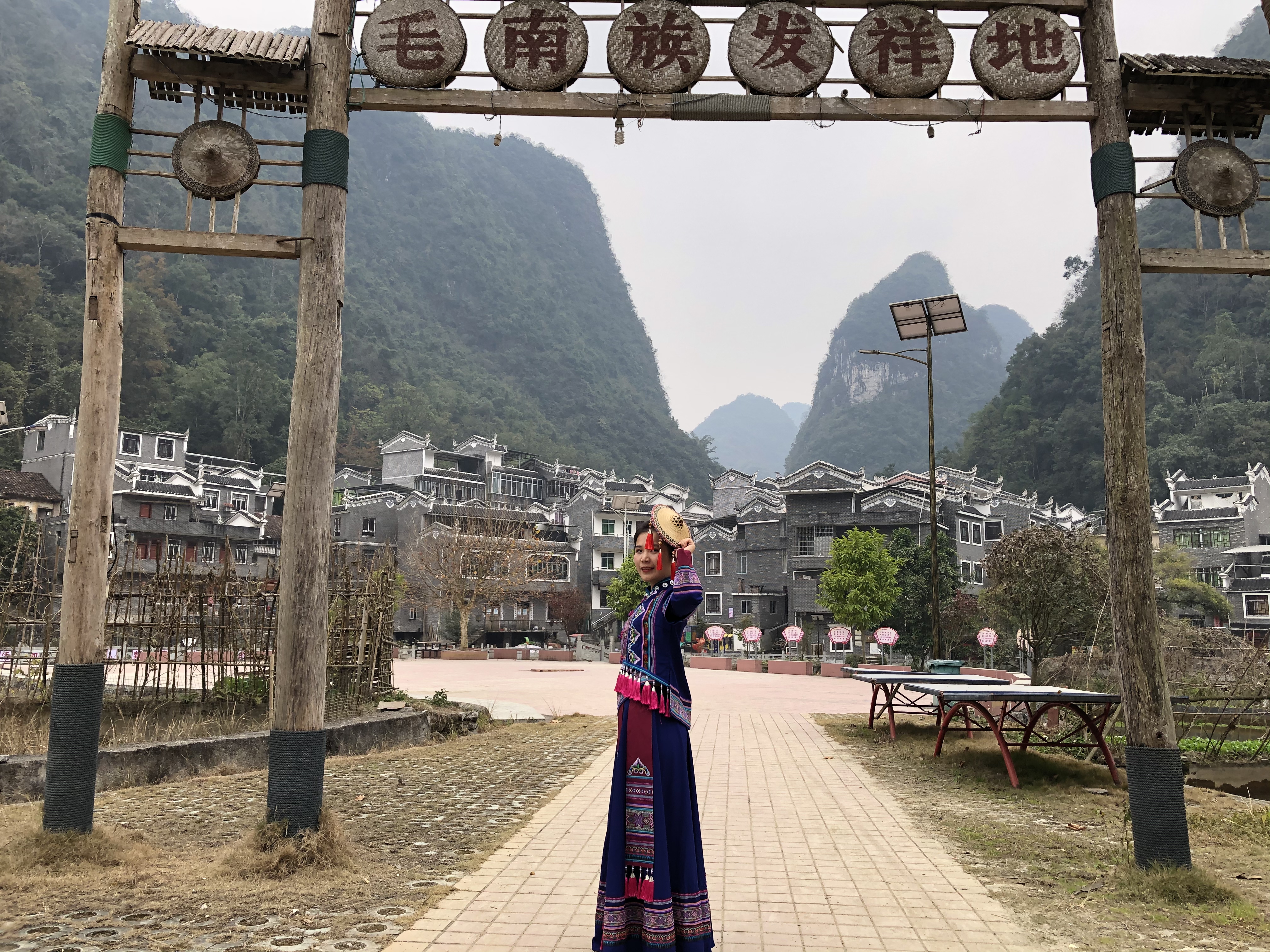 毛南族整族脱贫后,谭春丽穿着民族服装回家乡拍照留念。(受访者供图)