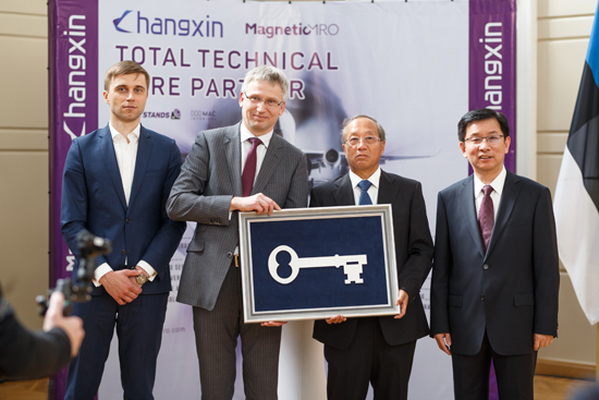 航新科技收购爱沙尼亚MMRO时的股权交割仪式。 受访者供图