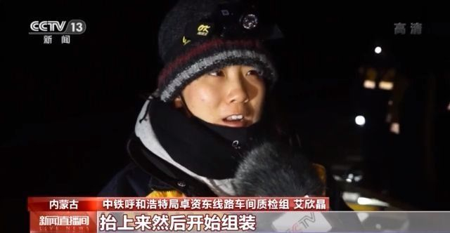 中铁呼和浩特局卓资东线路车间质检组 艾欣晶:我们刚开始因为女孩子没有力气,我身高是一米五多,设备宽度差不多一米四,所以我们就是团队协作往上抬,抬上来再开始组装。