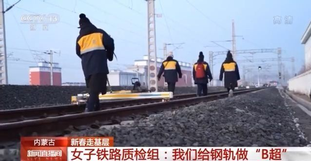 随着春运的到来,姑娘们更加繁忙。每天,她们都要拎着40多公斤的轨道检查仪,利用超声波探测钢轨内部伤损。遇到线路不平顺的地方,回声波形就会出现异常,姑娘们需要盯住屏幕留意这些变化,就像医院里做B超的大夫。寒冷的冬天,带着沉重的仪器行走在铁路线,对老工人来说都是不小的考验,何况这些年轻的女孩。