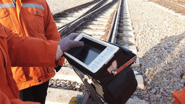 不远处,正在作业的6位同事迅速将两台重达50公斤的超声波探伤仪搬离铁轨。