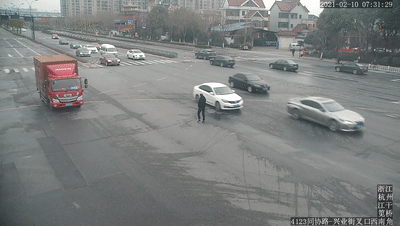 不顾往来车流,十分危险
