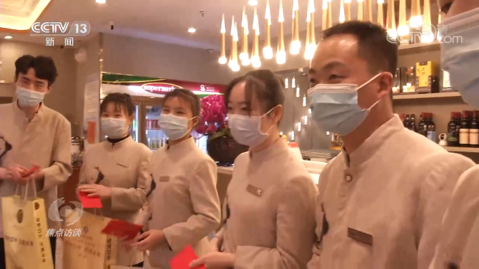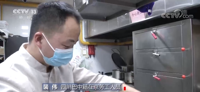不仅是家乡在用各项温暖的志愿服务让在外的务工人员能够安心地就地过年,工作地也在积极地想办法让他们在外也过好年。北京市人力资源和社会保障局就向市内的企业家协会发出倡议,号召广泛开展送温暖活动。腊月二十八当天,巴中商会就来到裴伟所在的餐馆,为这里的老乡拜年。
