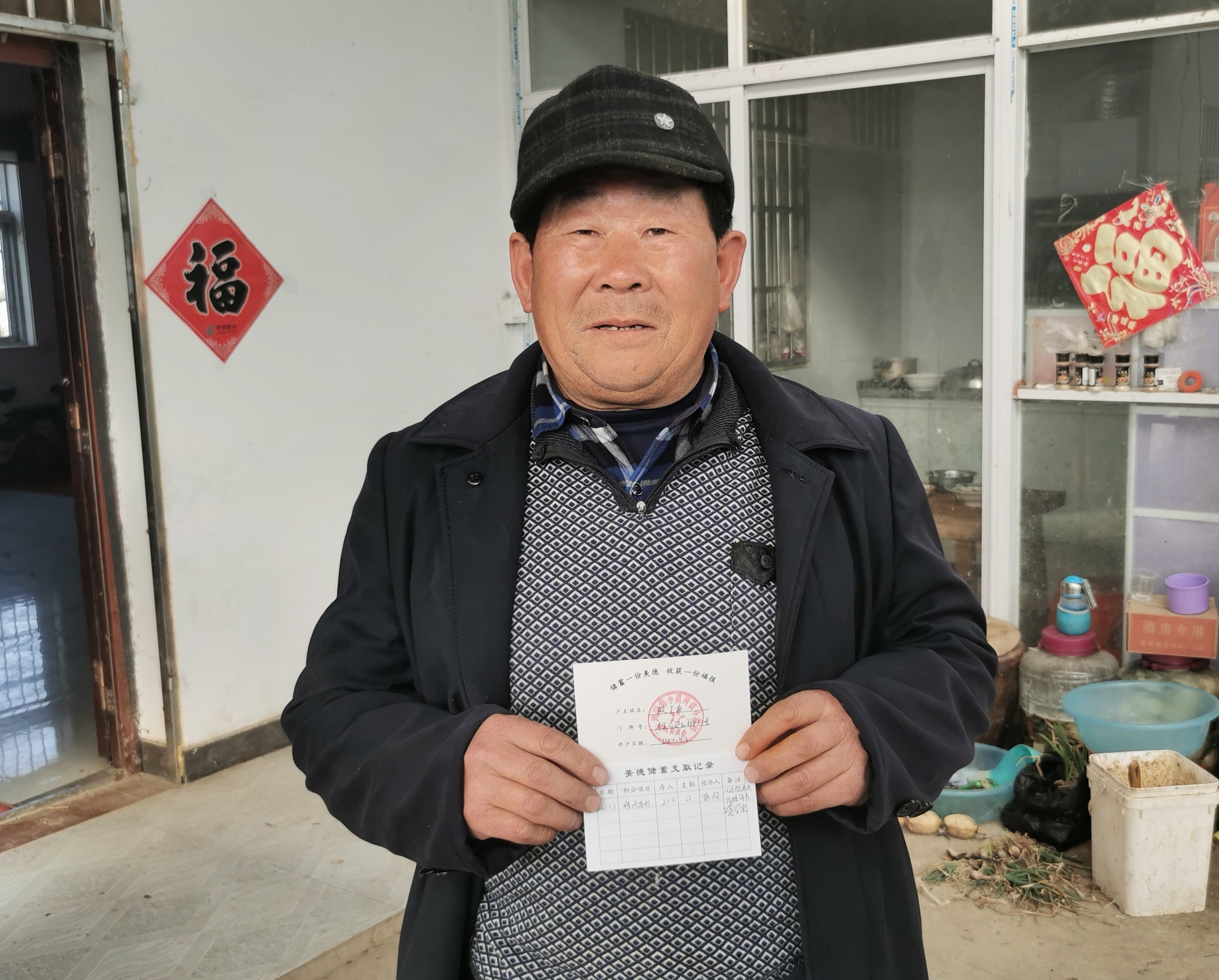 小岗村村民殷广为向记者展示“美德银行”善行美德积分“存折”。 新华社记者姜刚 摄