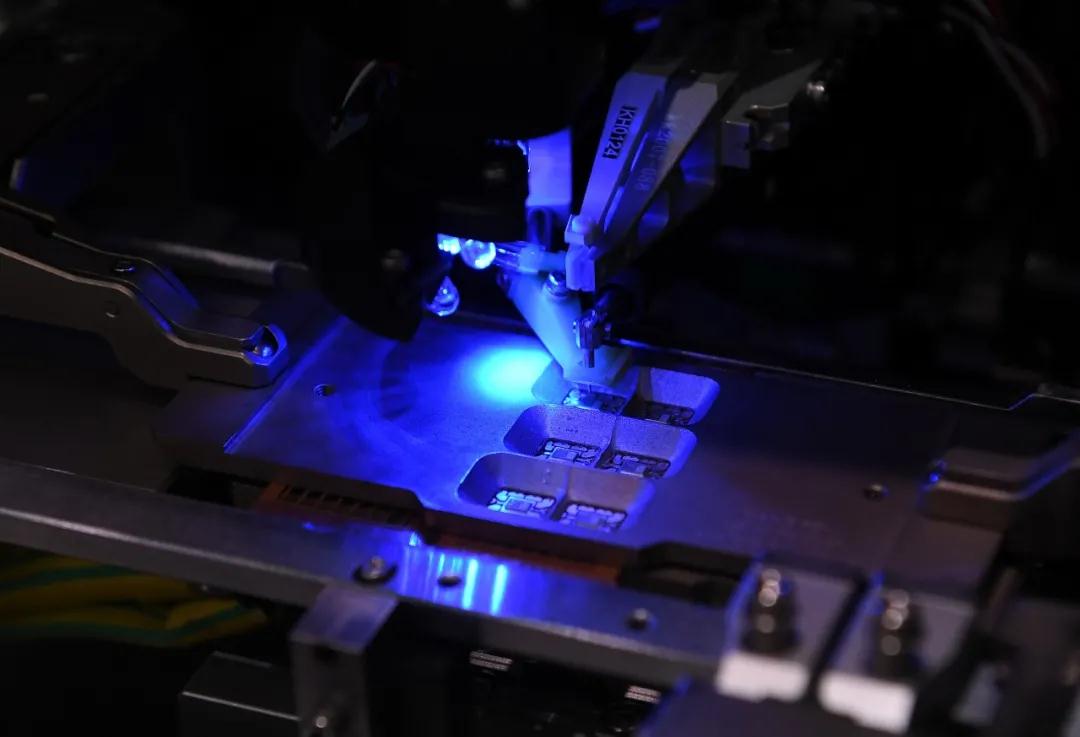 2020 年 11 月 11 日,在第二十二届中国国际高新技术成果交易会上,大族激光展台上的高速全自动半导体金 / 铜线焊线机进行展示 毛思倩摄